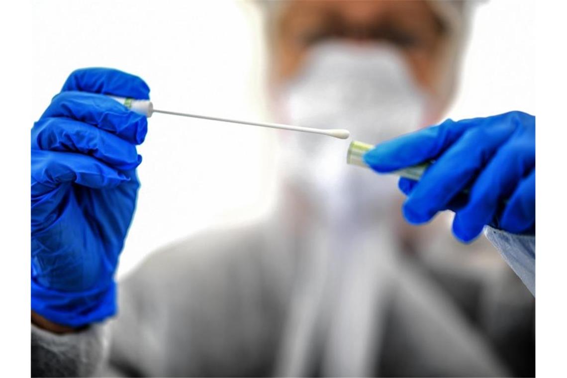 Ein Abstrichstäbchen wird in einer ambulanten Corona-Test-Einrichtung gehalten. Foto: Britta Pedersen/dpa-Zentralbild/dpa/Symbolbild