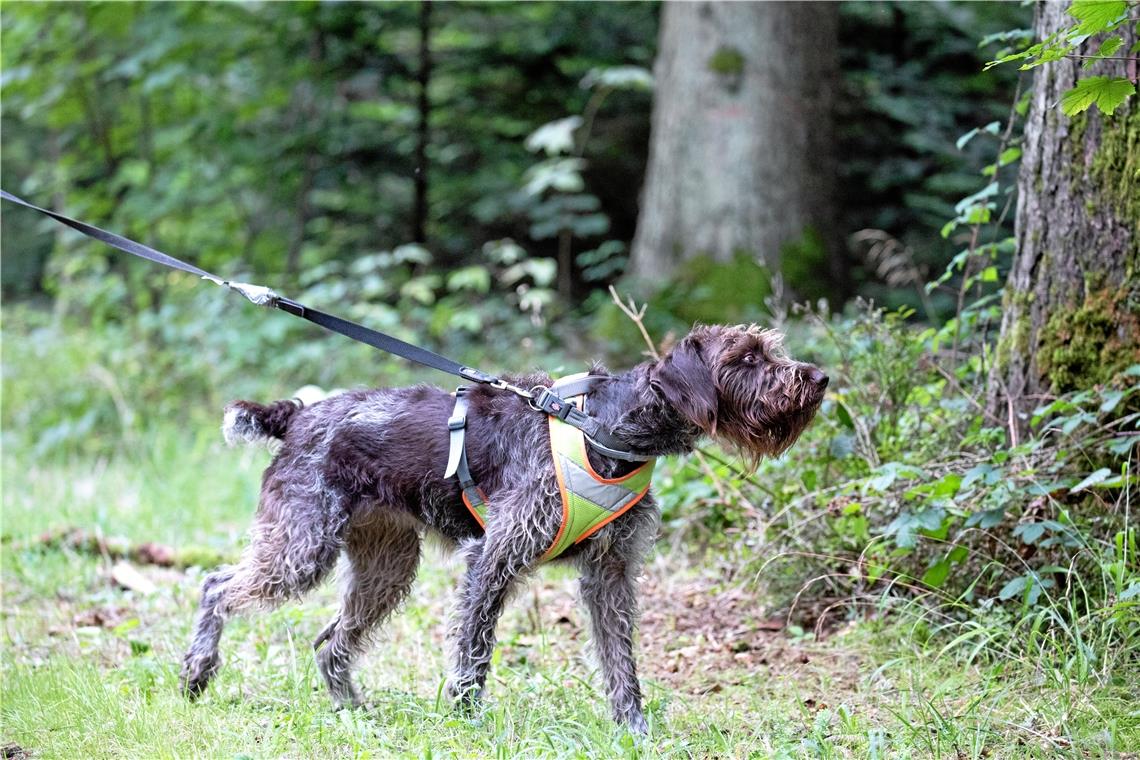 Hoch motiviert: Michael Braun schickt seine Nala los, damit sie das Waldgebiet scannt.