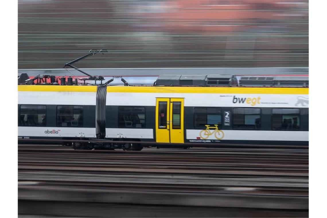 Ein Regionalzug des privaten Bahnbetreibers Abellio fährt vor dem Stuttgarter Hauptbahnhof. Foto: Sebastian Gollnow/dpa/archivbild