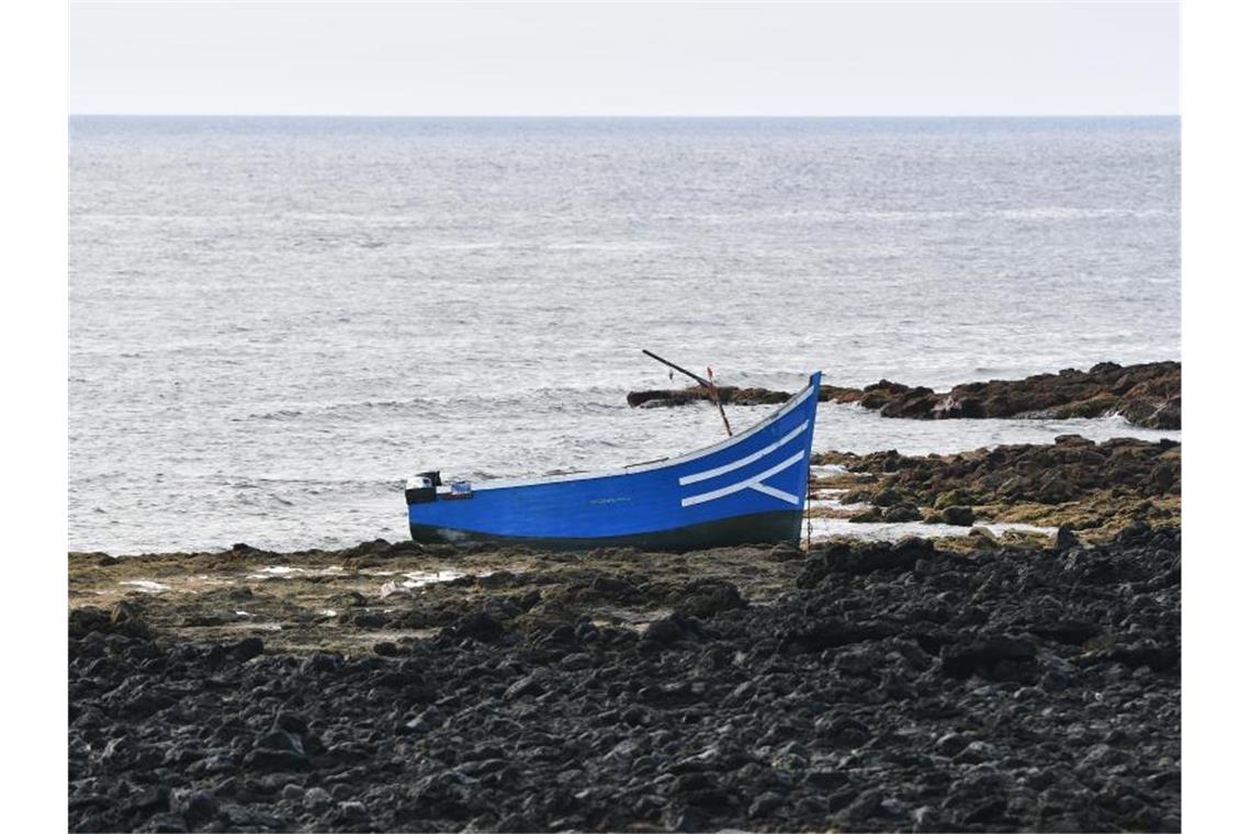 Ein Boot, mit dem Migranten Spanien erreicht haben, liegt am Strand von Las Caletas auf Lanzarote. Foto: Europa Press/EUROPA PRESS/dpa/Symbolbild