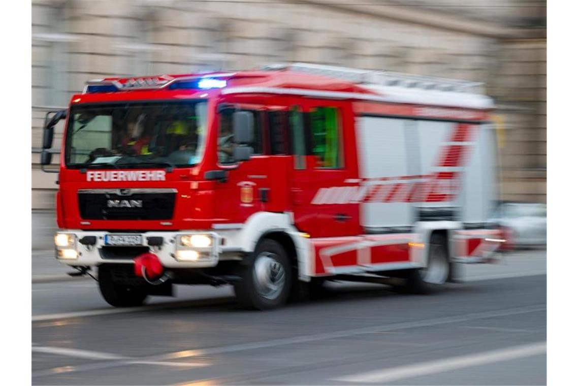 Ein Feuerwehrfahrzeug ist mit Blaulicht auf Einsatzfahrt. Foto: Monika Skolimowska/dpa-Zentralbild/ZB/Symbolbild