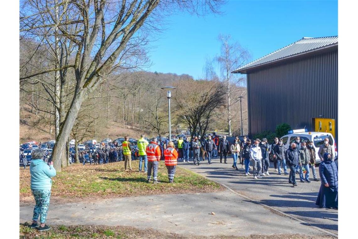 Menschen kommen zu einer Trauerfeier für den getöteten 13-jährigen Jungen in Sinsheim. Foto: Julian Buchner/Einsatz-Report24/dpa
