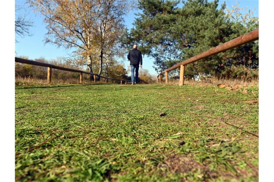 Eine Person geht durch das Naturdenkmal „Sandgrube Grüner Weg“. Foto: Uli Deck/dpa/Archivbild
