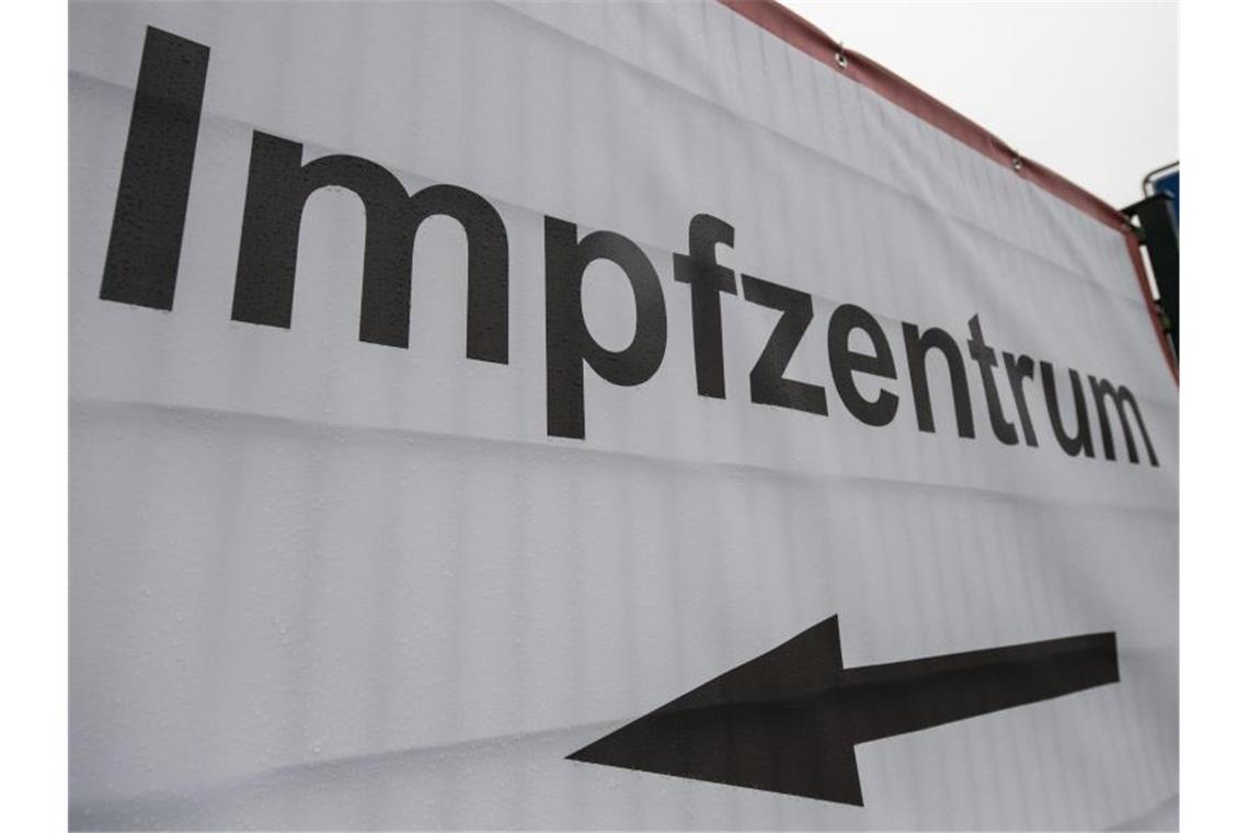 Ein Schild weist den Weg zu einem Impfzentrum. Foto: Boris Roessler/dpa/Symbolbild