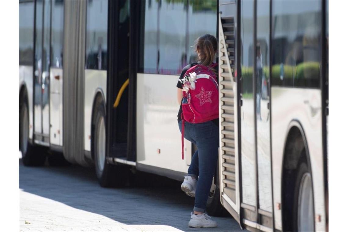 Eine Schülerin steigt an einer Bushaltestelle in einen Bus ein. Foto: Marijan Murat/dpa