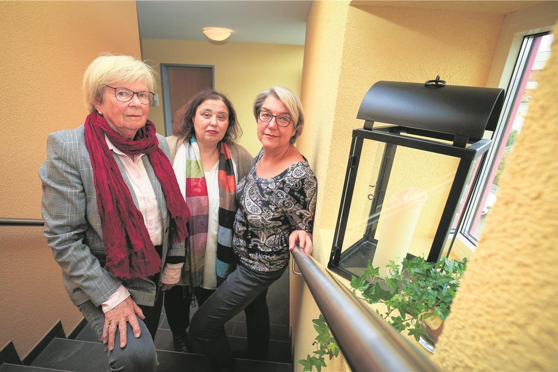 Symbole spielen für Marlis Funk-Becker, Tanja Menz und Susanne Stolp-Schmidt (von links) eine große Rolle. So wird zum Beispiel jedes Mal, wenn ein Hospizbewohner stirbt, die Kerze zum Gedenken angezündet. Foto: A. Becher