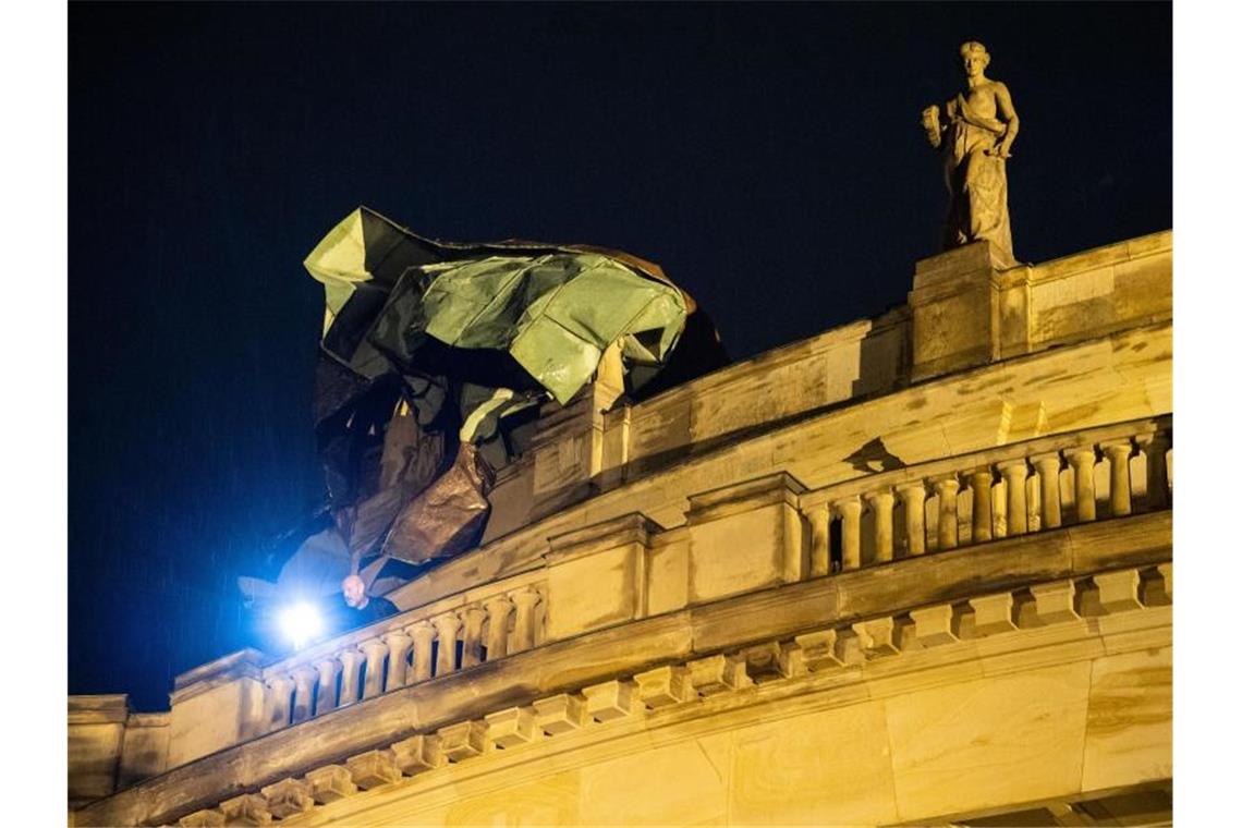 Das Dach des Stuttgarter Opernhauses wurde durch einen Sturm teilweise abgedeckt. Foto: Marijan Murat/dpa