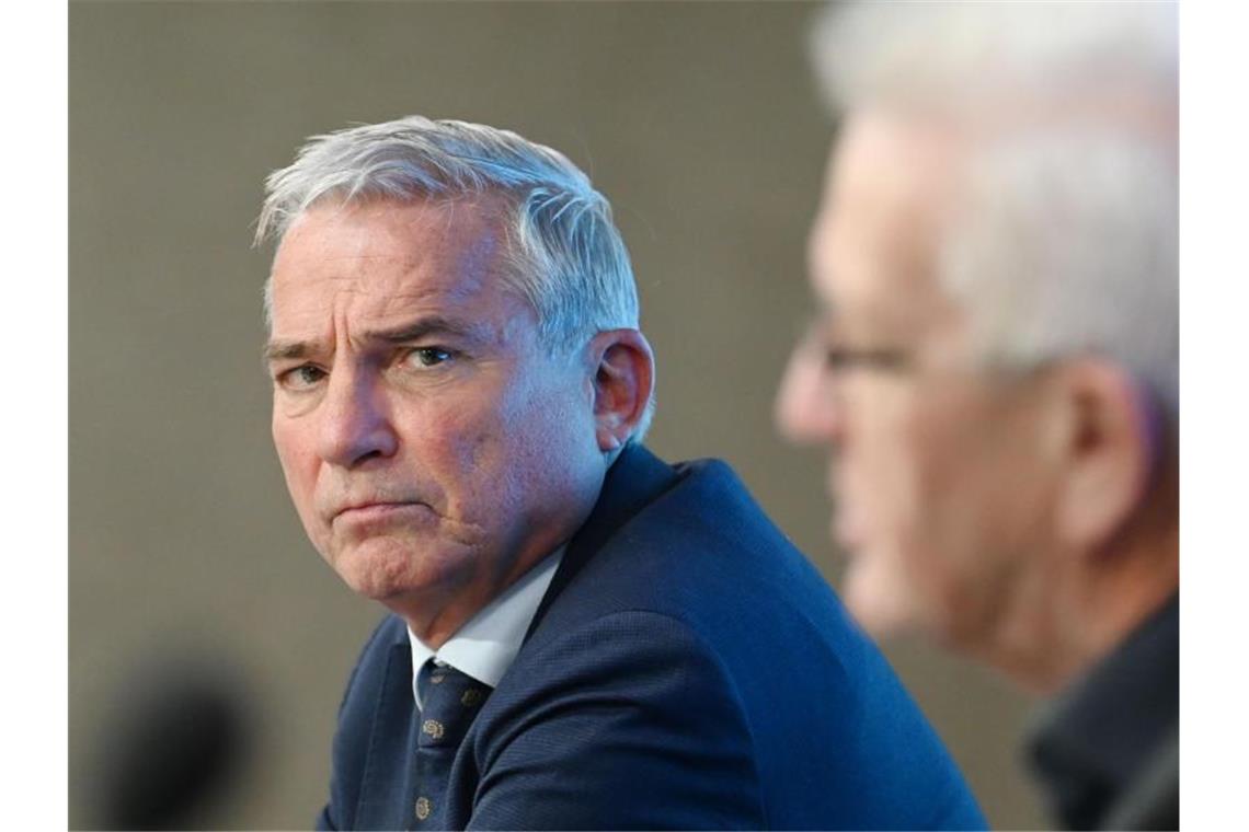 Thomas Strobl (CDU, l), Innenminister von Baden-Württemberg, neben Ministerpräsident Kretschmann. Foto: Marijan Murat/dpa