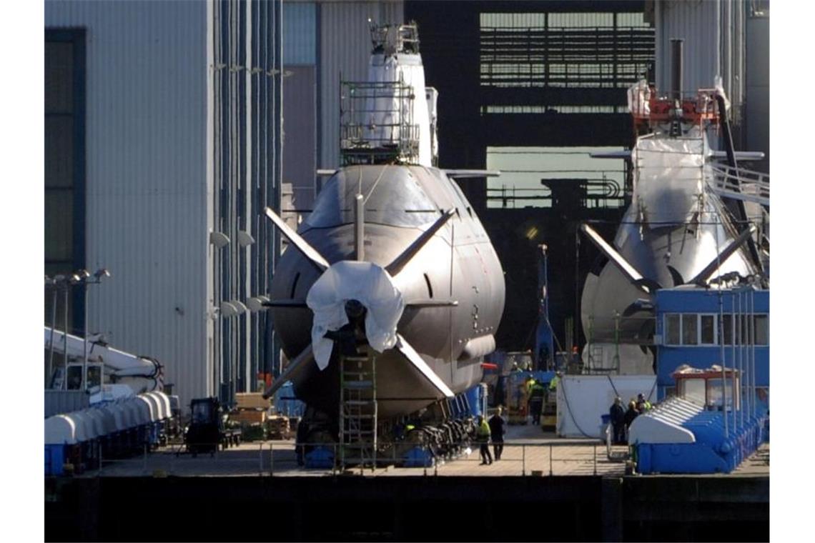 Ein im Bau befindliches U-Boot liegt in der Werft von ThyssenKrupp Marine Systems in Kiel. Foto: Marcus Brandt/dpa