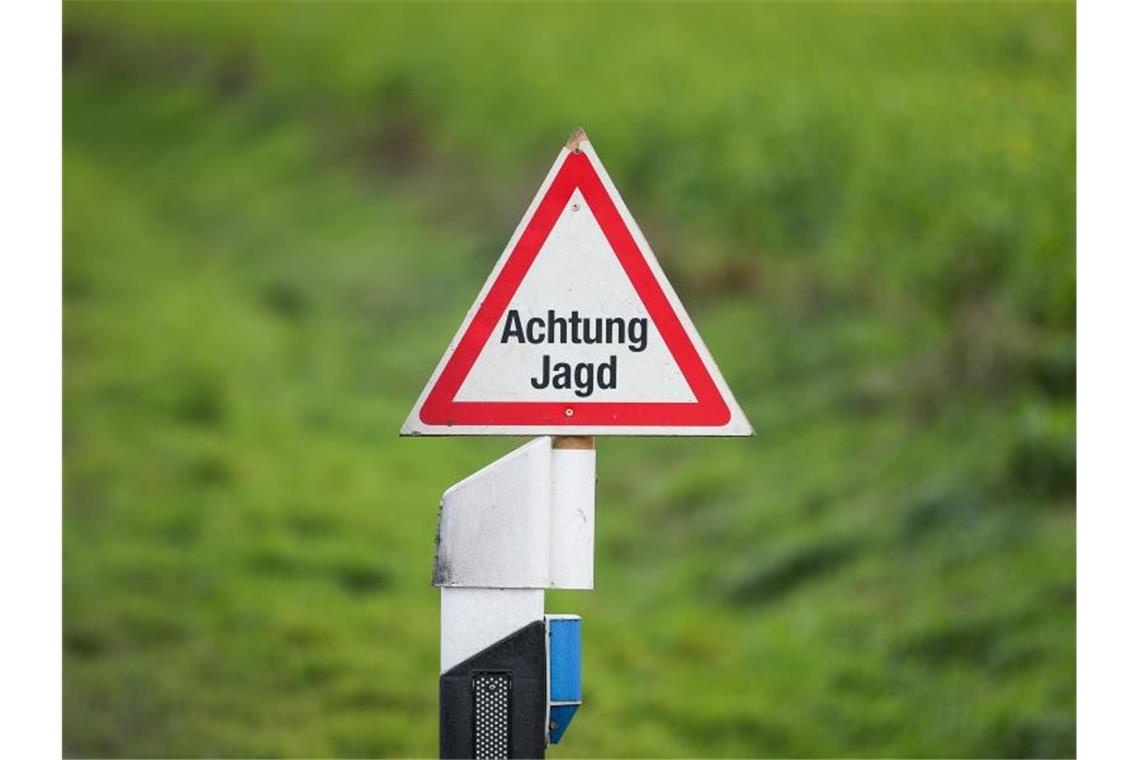 Ein Straßenschild mit der Aufschrift „Achtung Jagd“. In der niedersächsischen Gemeinde Marklohe wurde ein Jäger bei der Jagd von einem Schuss getroffen und dadurch getötet. Foto: Friso Gentsch/dpa