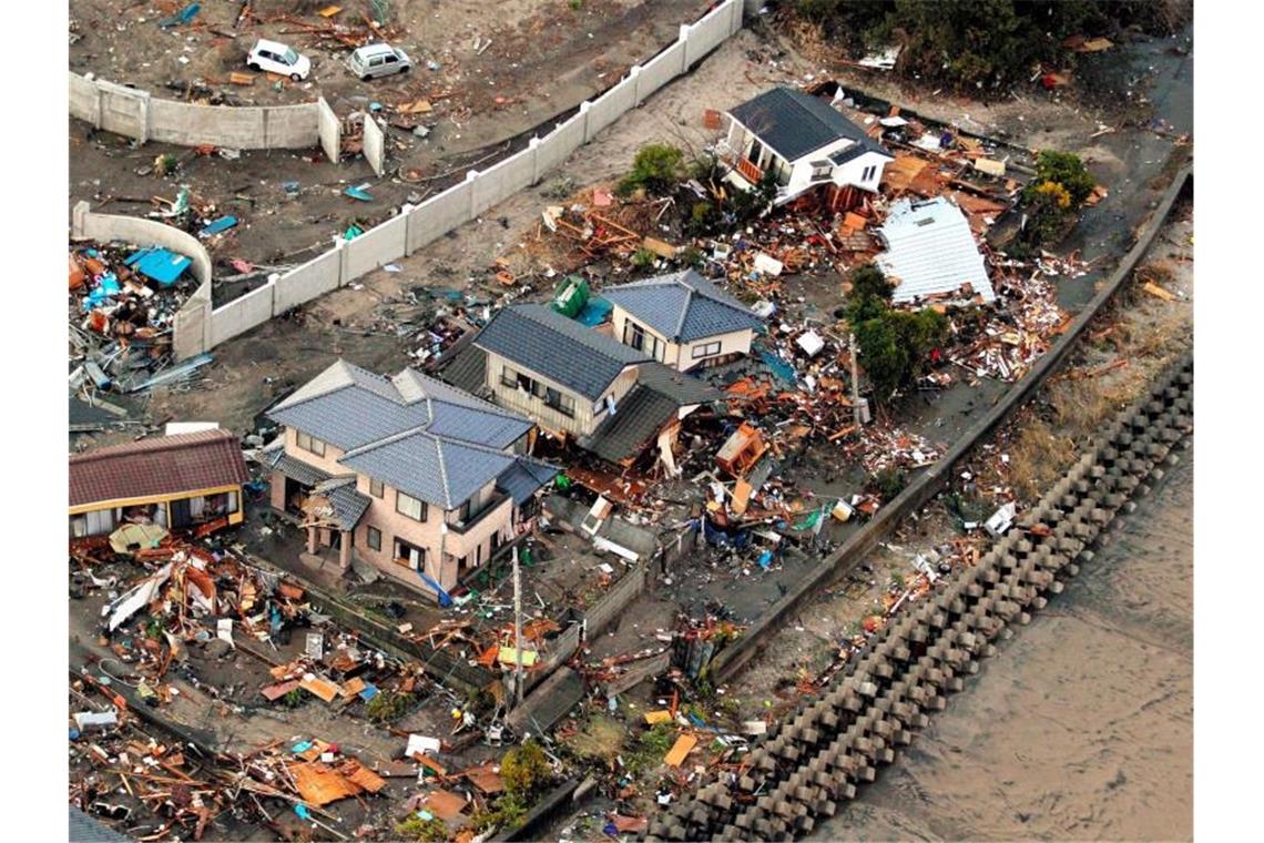 Vor zehn Jahren: Häuser in Iwaki, die durch die Tsunami-Fluten nach dem Tohoku-Erdbeben in der Präfektur Fukushima zerstört wurden. Foto: EPA/dpa