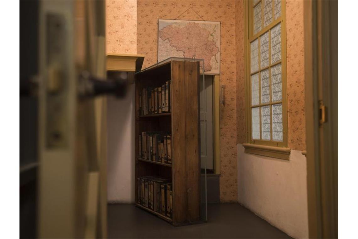 Der Durchgang zu einem geheimen Anbau ist in der Dauerausstellung im Anne-Frank-Haus in Amsterdam zu sehen. Über zwei Jahre lang versteckten sich die Familie Frank und weitere Familien in einem Versteck an der Prinsengracht 263. Foto: Peter Dejong/AP/dpa