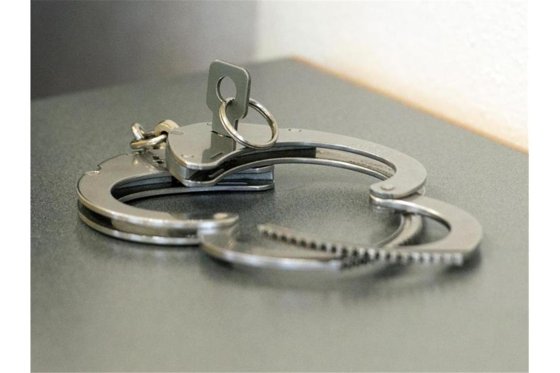 Handschellen liegen auf einem Tisch. Foto: Armin Weigel/dpa