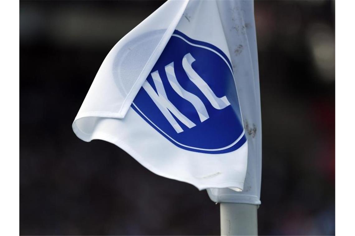 Eine Eckballfahne mit dem Logo des Karlsruher SC. Foto: Uli Deck/Archivbild