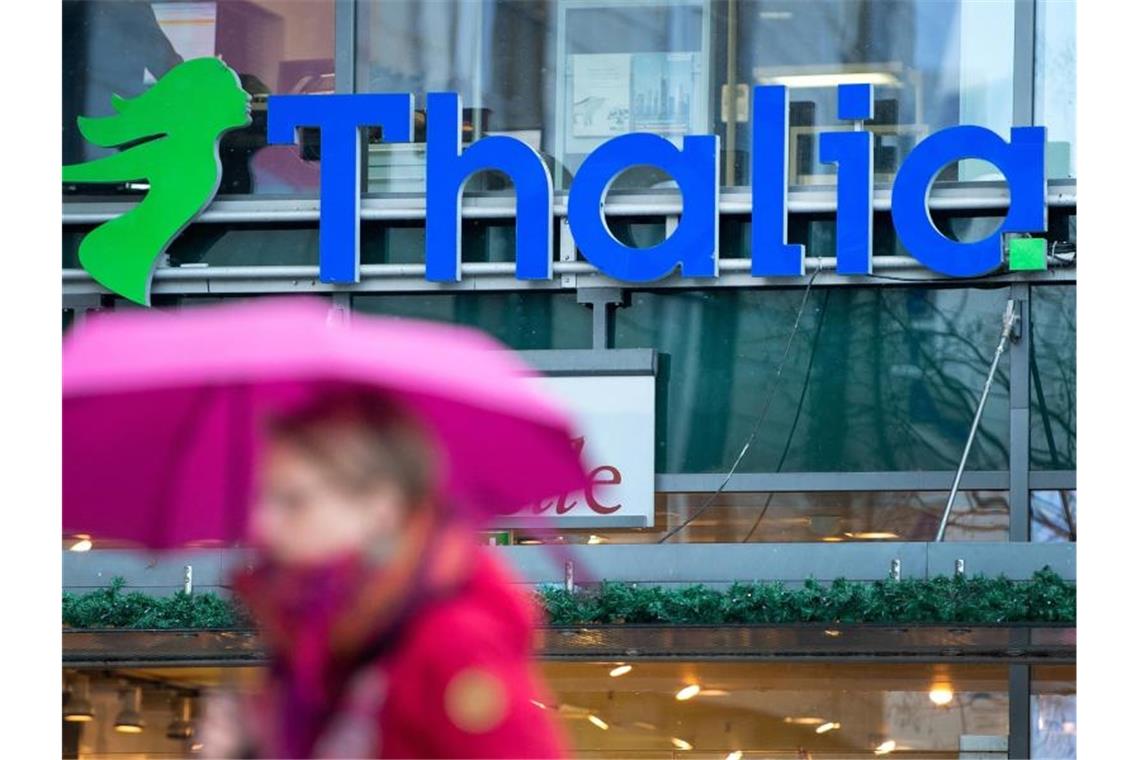 Eine Frau geht an einer Thalia Buchhandlung vorbei. Foto: Monika Skolimowska/zb/dpa