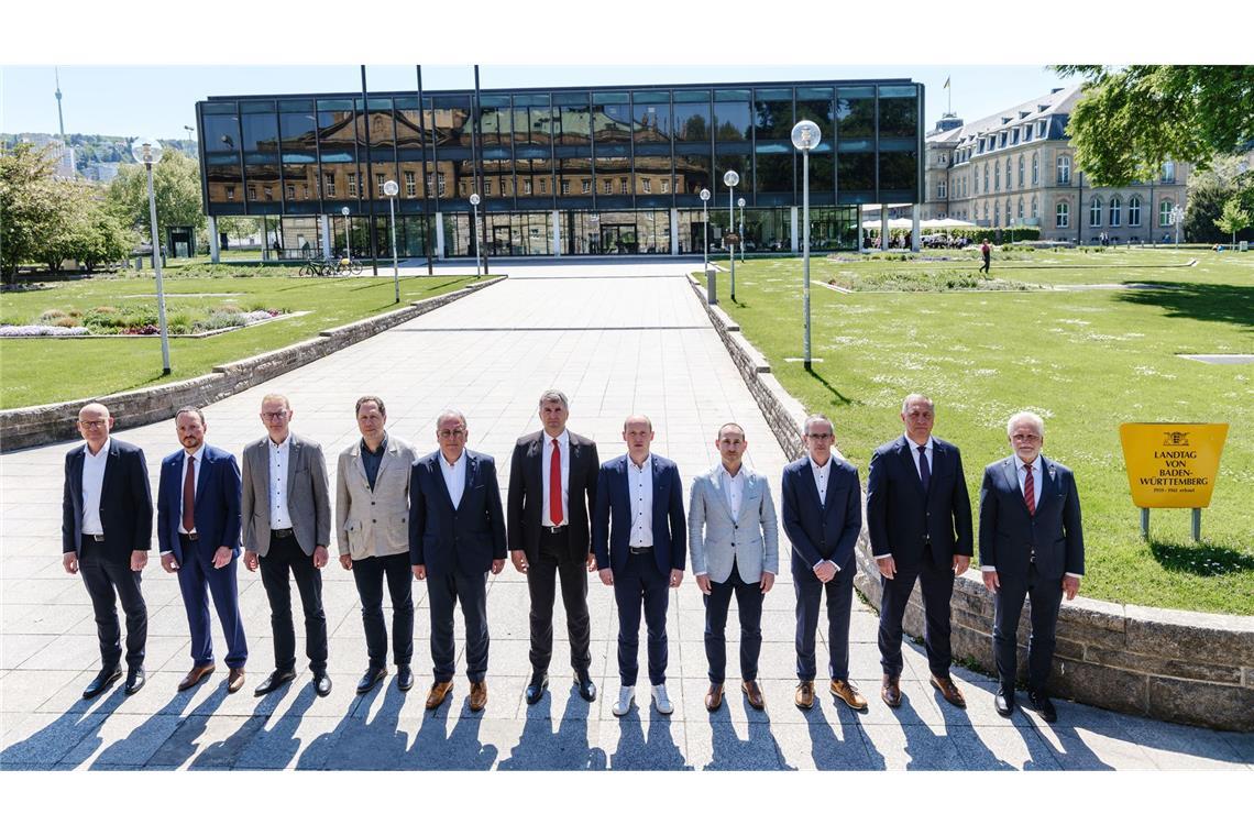 Für die Aufnahme des Videos hat der Städtetag Baden-Württemberg mehrere Bürgermeister vor dem Landtagsgebäude in Stuttgart zusammengetrommelt.