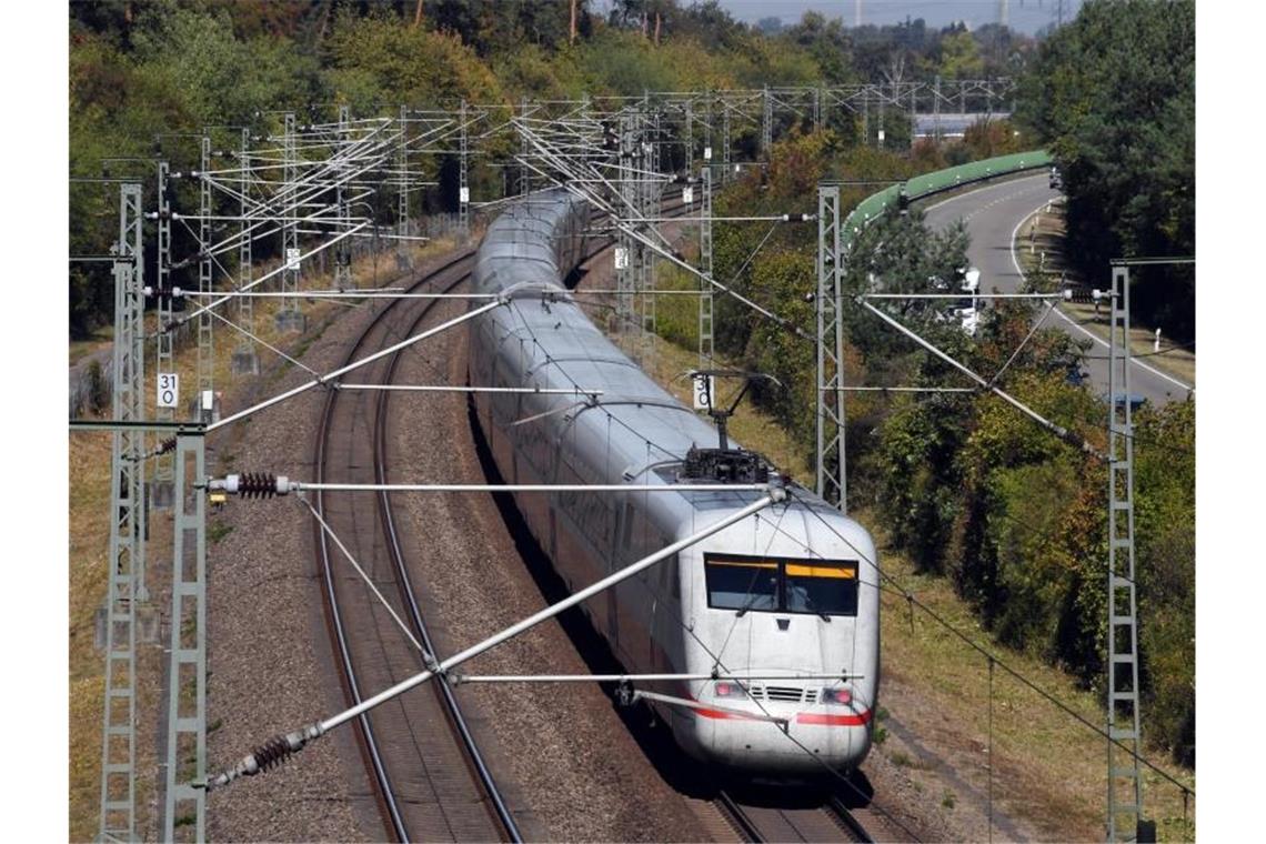 Ein ICE der Deutschen Bahn fährt bei Wiesental auf der Schnellfahrstrecke Mannheim-Stuttgart. Foto: Uli Deck/dpa/Archivbild