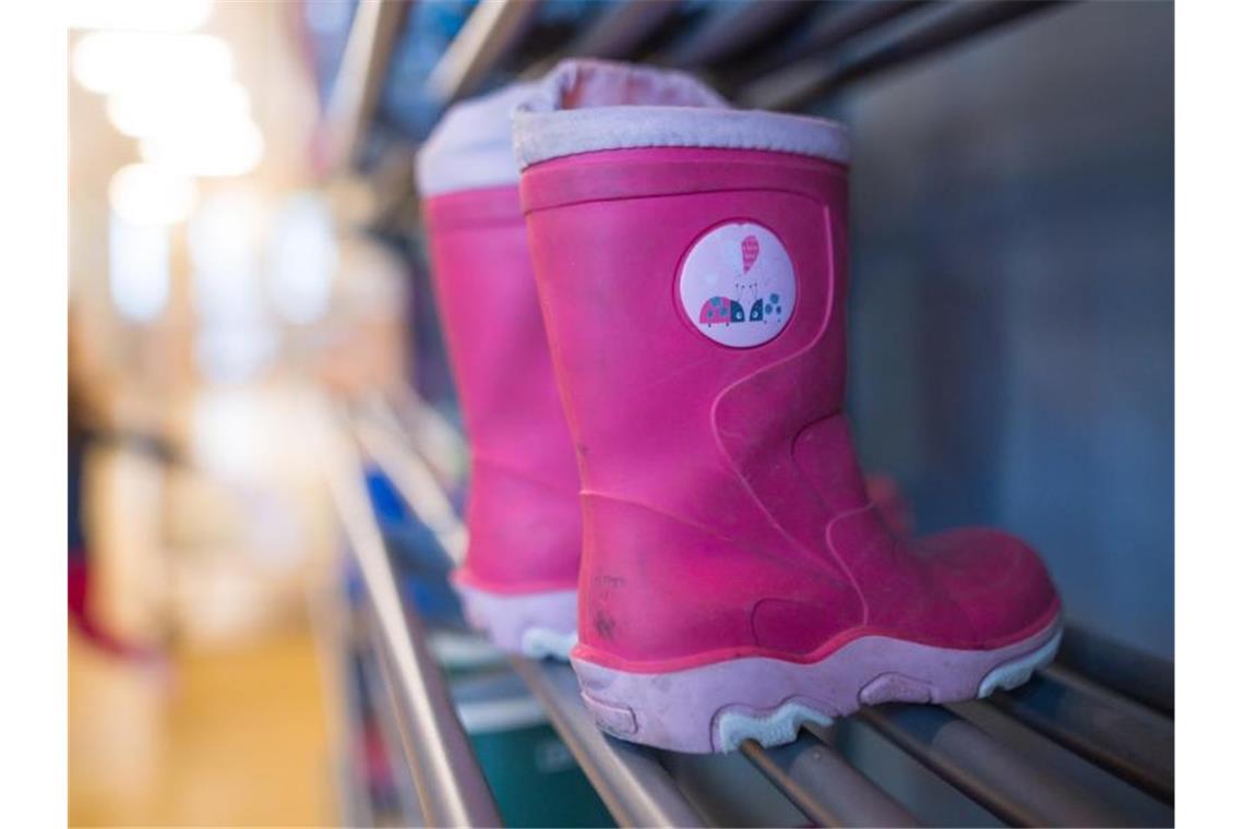 Gummistiefel stehen in einer Kita. Foto: Sebastian Gollnow/dpa/Symbolbild/Archiv