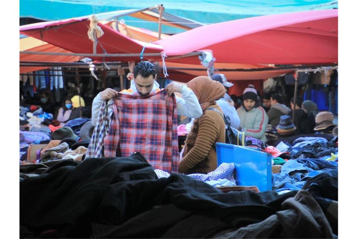 Berge von T-Shirts, Jeans und Schuhen türmen sich auf wackeligen Tischen. Mit viel Ausdauer durchstöbern die Kunden an einem sonnigen Wintertag die gebrauchten Kleidungsstücke auf einem zentralen Markt in Tunesiens Hauptstadt.