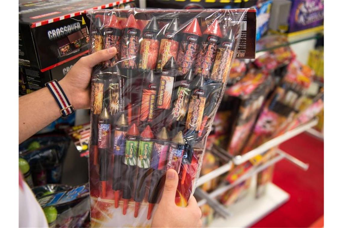 Feuerwerksraketen liegen in einem Kaufhaus zum Verkauf bereit. Foto: Lino Mirgeler/dpa/Archiv