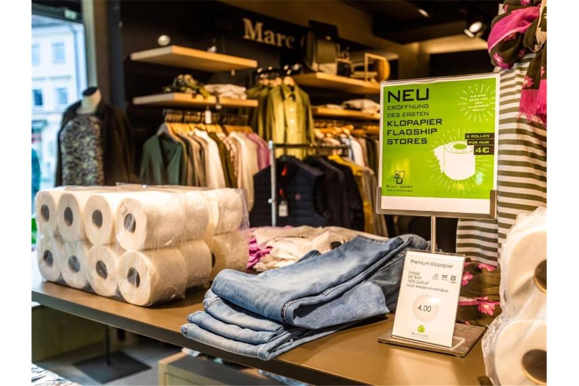 Klopapier und Modeartikel liegen im Modehaus Blum-Jundt in den Regalen und auf der Verkaufsfläche. Foto: Philipp von Ditfurth/dpa