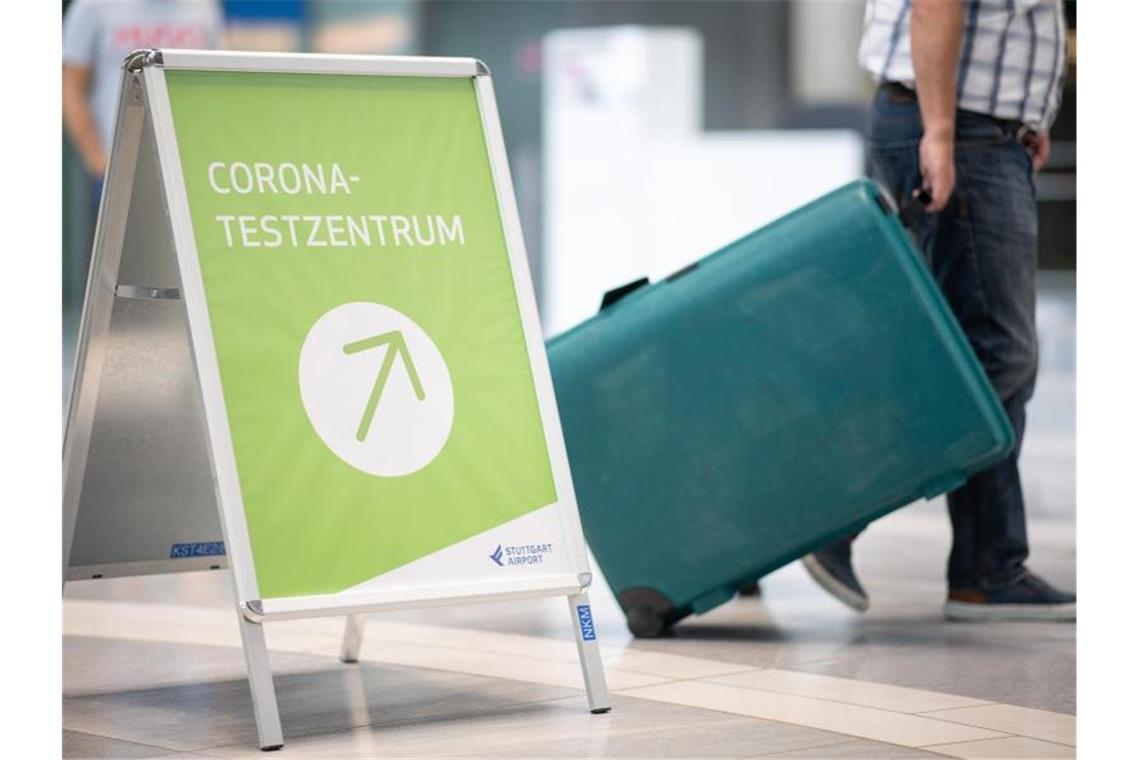 „Corona-Testzentrum“ steht am Stuttgarter Flughafen auf einem Schild. Foto: Sebastian Gollnow/dpa/Archiv