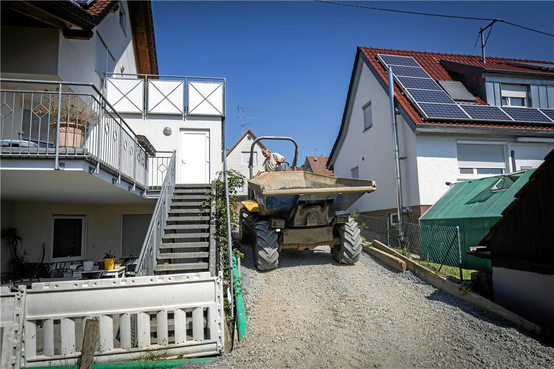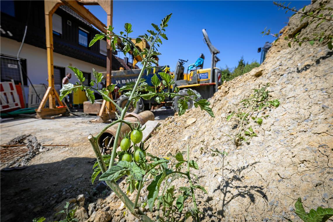 Wo eigentlich die Gärten aneinanderstoßen, verläuft jetzt eine Baustraße.