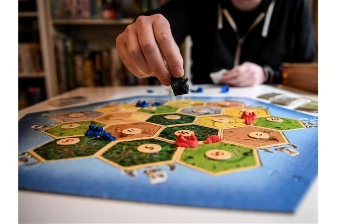 Spieler spielen das Spiel „Siedler von Catan“. Foto: Britta Pedersen/dpa-Zentralbild/dpa/Archivbild