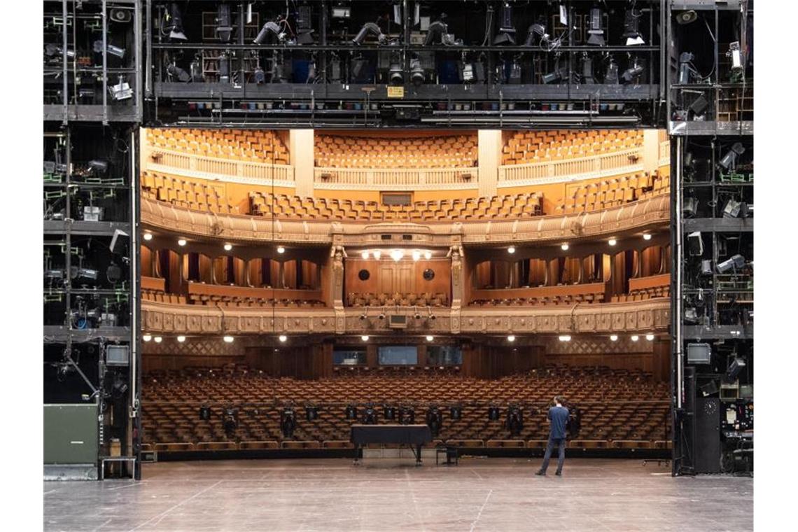 Ein Mitarbeiter der Staatstheater Stuttgart steht auf der Bühne des Opernhauses. Foto: Marijan Murat/dpa/Archivbild