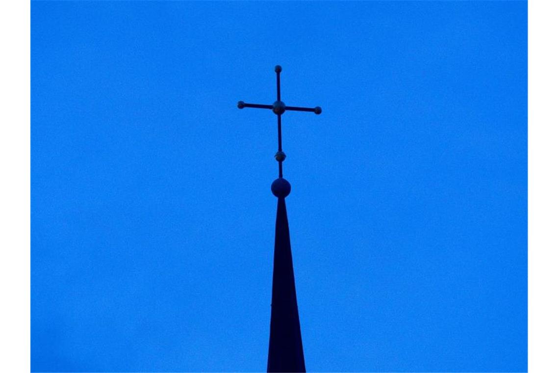 Das Kreuz einer Kirche ist in der Abenddämmerung zu sehen. Foto: Friso Gentsch/dpa/Symbolbild