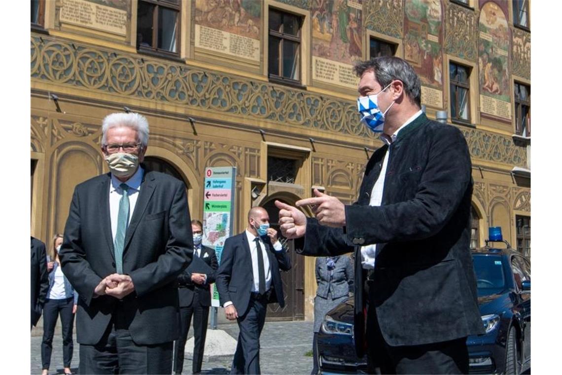 Die Ministerpräsidenten Winfried Kretschmann (Bündnis 90/Die Grünen, l) und Markus Söder (CSU). Foto: Stefan Puchner/dpa