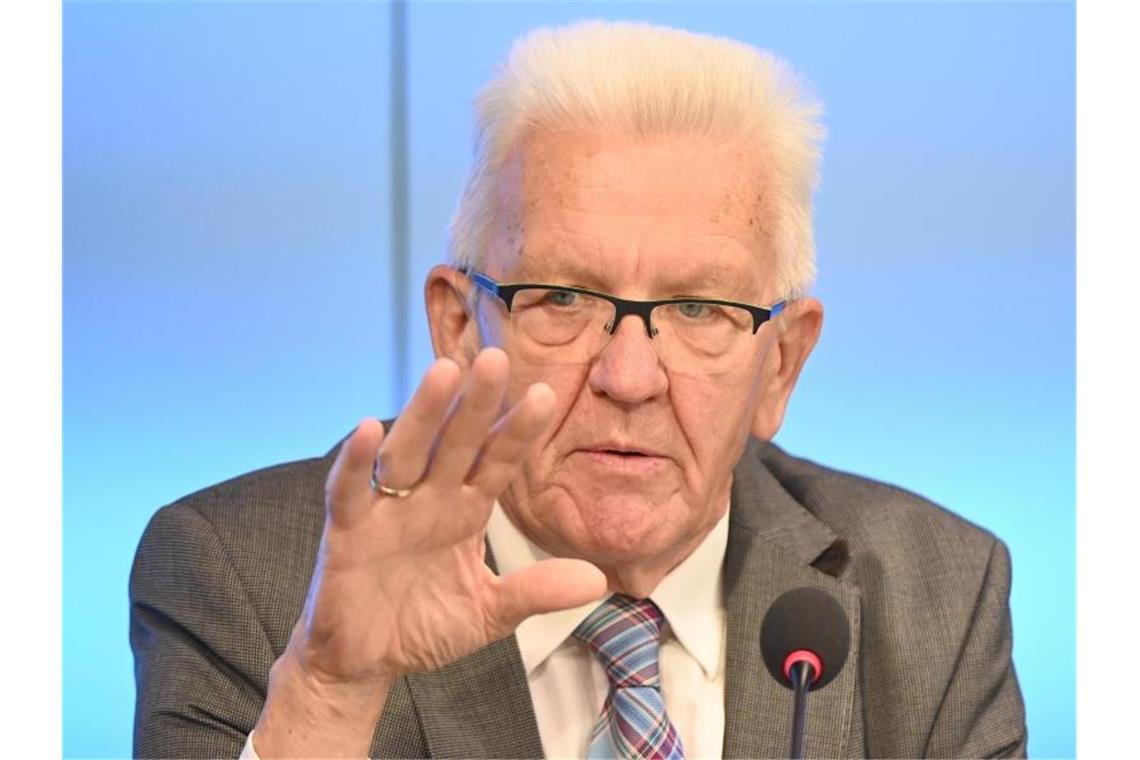 Baden-Württembergs Ministerpräsident Winfried Kretschmann (Grüne) nimmt an einer Pressekonferenz teil. Foto: Bernd Weißbrod/dpa