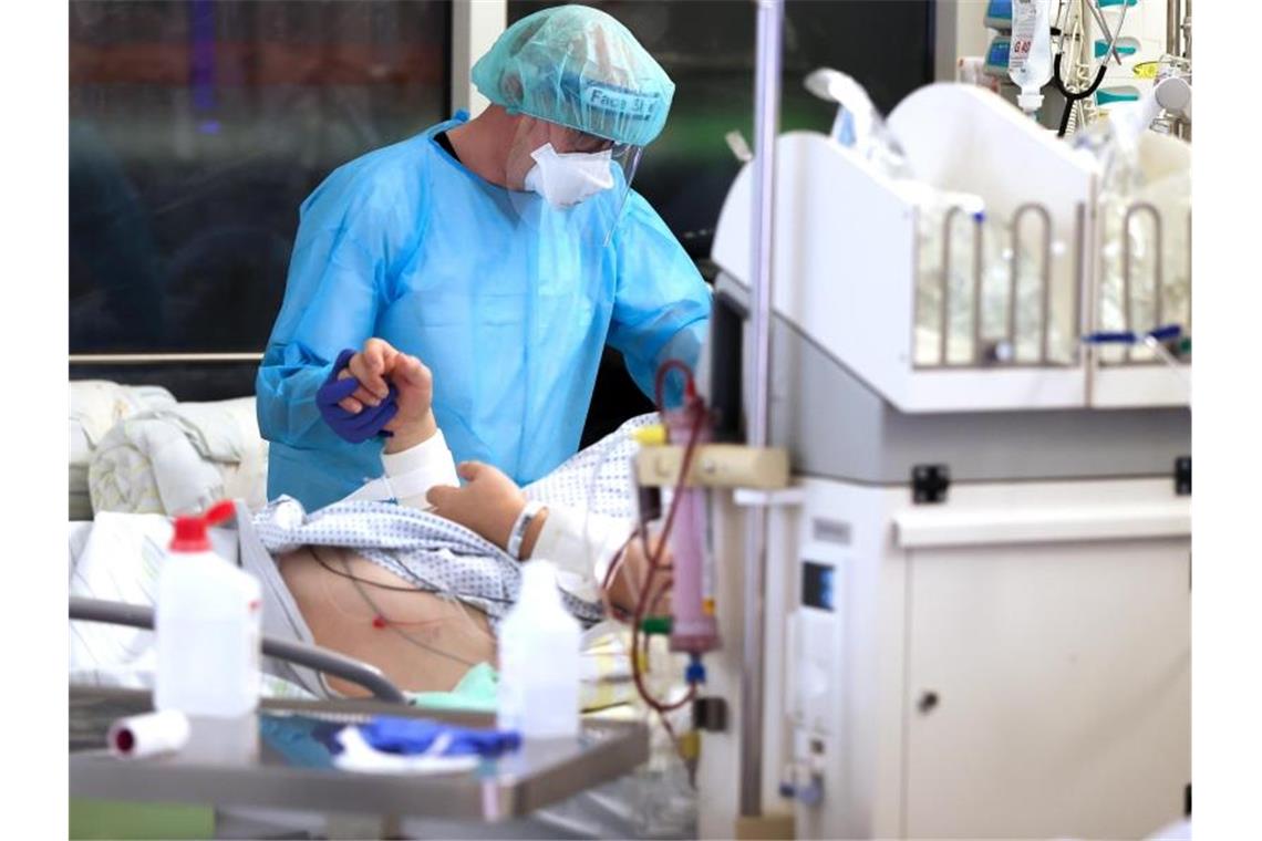 Ein Facharzt versorgt einen Covid-19-Patienten auf der Intensivstation der Leipziger Uniklinik. Foto: Jan Woitas/dpa-Zentralbild/dpa