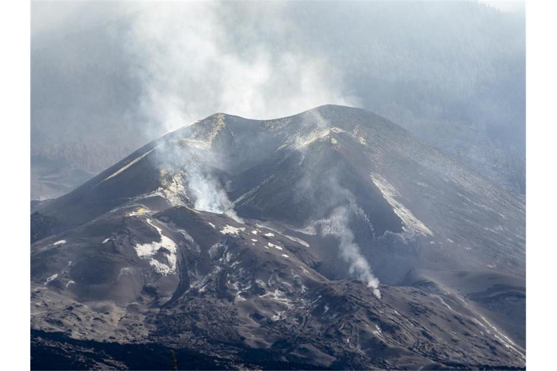 Nur noch kleinere Rauchwolken hängen über dem Vulkan in der Cumbre Vieja auf La Palma. Foto: Alexandre Diaz/EUROPA PRESS/dpa