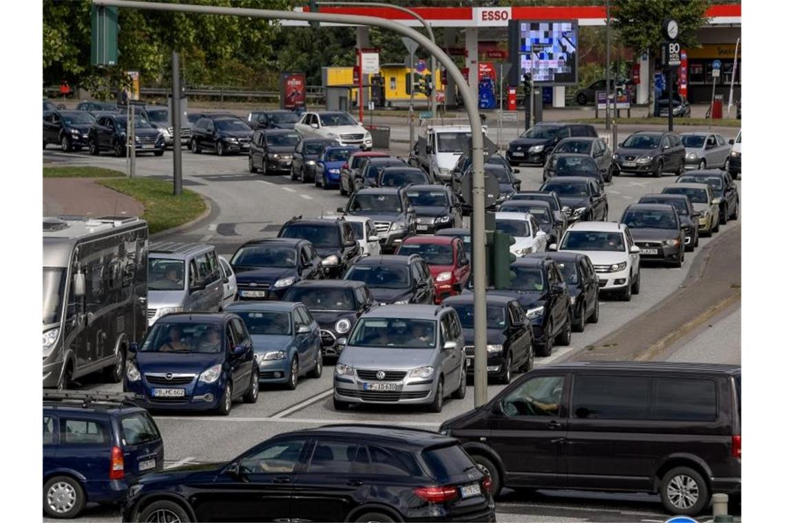 Auf einer Straße hat sich ein langer Stau gebildet. Foto: Axel Heimken/dpa/Archivbild