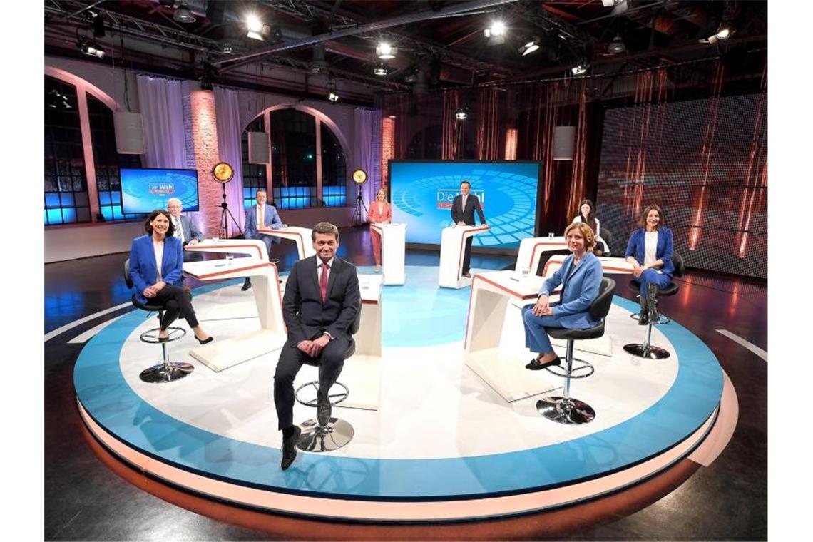 Die Spitzenkandidaten der Landtagswahl in Rheinland-Pfalz bei einer Diskussionsrunde. Foto: Kristina Schäfer/SWR/dpa