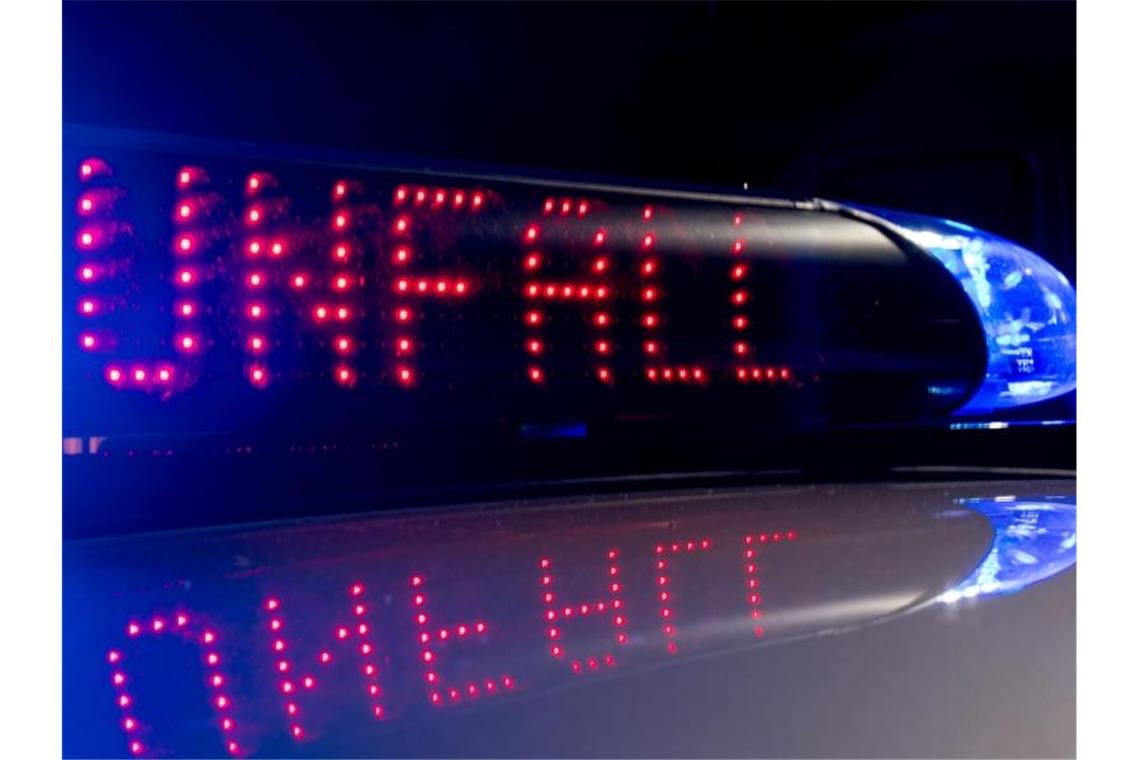 Ein Display warnt vor einem Unfall, das Blaulicht ist eingeschaltet. Foto: Monika Skolimowska/zb/dpa/Archivbild