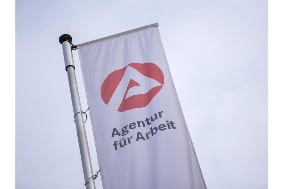 Eine Fahne weht vor der Agentur für Arbeit. Foto: Daniel Bockwoldt/dpa/Archiv