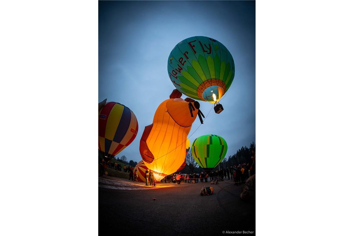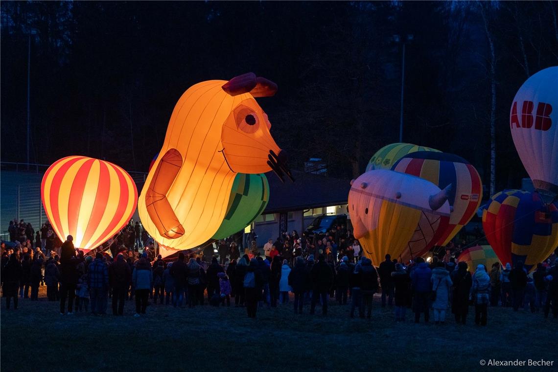 Althütte. Frostige zwei Grad und Wind, zwar nicht viel, aber doch spürbar – die äußeren Bedingungen hätten beim Modellballonglühen in Sechselberg angenehmer sein können. Und trotzdem ließen sich am Samstagabend Heerscharen von Besuchern das Lichtspektakel nicht nehmen und pilgerten zum Sportplatz des TSV Sechselberg, wo kurz vor Einbruch der Dämmerung auf der Freifläche vor dem Sportlerheim 18 Modellballons in allen Farben und Formen leuchteten. Die große Resonanz ließ auch das Gesicht von Christian Schulz strahlen. Der Initiator des Modellballonglühens war mit dem Widerhall auf die achte Auflage des Treffens vollauf zufrieden. Und zwar in doppelter Hinsicht. Einmal vonseiten der aktiven Teilnehmer, sie sind aus ganz Deutschland angereist, manche auch aus Österreich und der Schweiz. Aber auch vonseiten der Besucher, das umrahmende Modellballonfeschdle war ein großer Erfolg.
