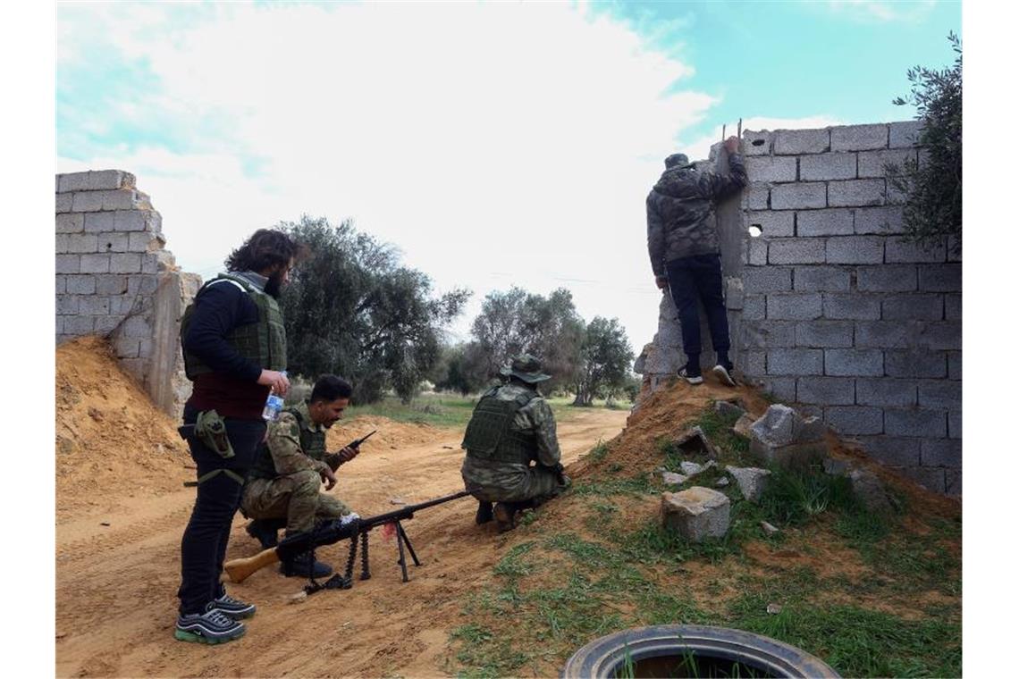 Die von den Vereinten Nationen unterstützten Regierungstruppen kämpfen, hier nahe Tripolis, gegen den aufständischen General Haftar. Foto: Hamza Turkia/XinHua/dpa