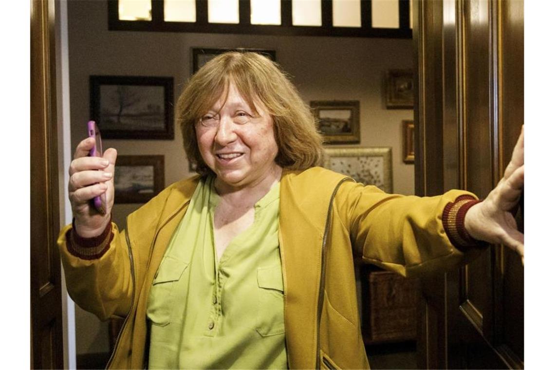 Alexijewitsch hatte Swetlana Tichanowskaja als Gegnerin Lukaschenkos bei der Wahl unterstützt. Die Autorin ergriff dann auch Partei für die friedlichen Proteste gegen Lukaschenko. Bei der neuen großen Sonntagsdemonstration gegen Lukaschenko waren rund 100.000 Menschen auf die Straßen gegangenen, um den Rücktritt des Politiker nach 26 Jahren an der Macht zu fordern. Der 66-Jährige hatte sich nach einer als maßlos gefälscht kritisierten Präsidentenwahl am 9. August zum Sieger erklären lassen. Bei den Protesten am Sonntag gab es einmal mehr rund 350 Festnahmen, wie das Innenministerium in Minsk mitteilte.