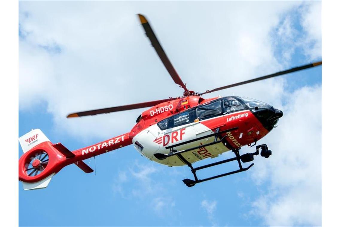 Ein Rettungshelikopter fliegt vor weißen Wolken. Foto: Hauke-Christian Dittrich/dpa/Archivbild