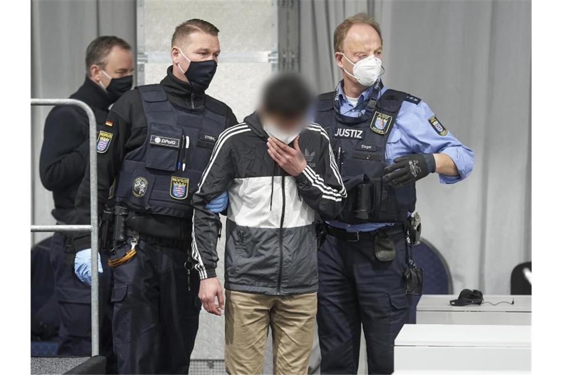 Der Angeklagte wird in den provisorisch in einem Festzelt eingerichteten Gerichtssaal geführt. Foto: Thomas Frey/dpa Pool/dpa