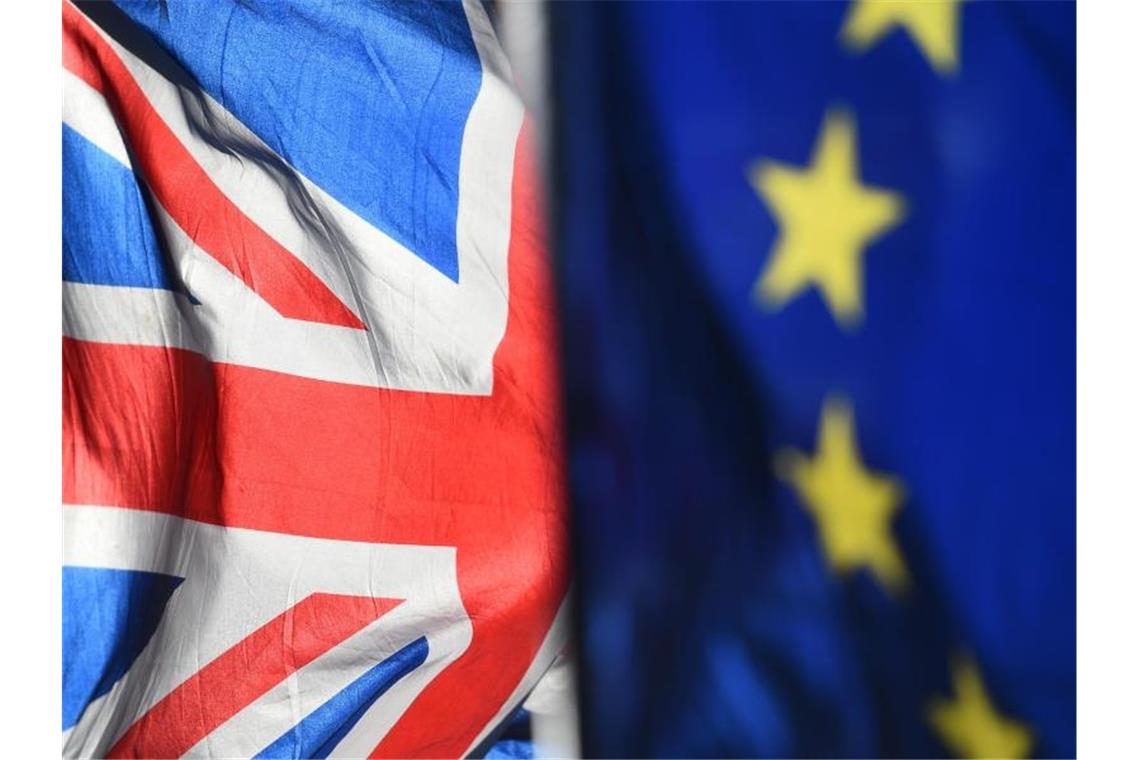 Eine Flagge von Großbritannien und eine Flagge der Europäischen Union wehen vor dem britischen Parlament in Westminster (Archivbild). Foto: Kirsty O'Connor/PA Wire/dpa