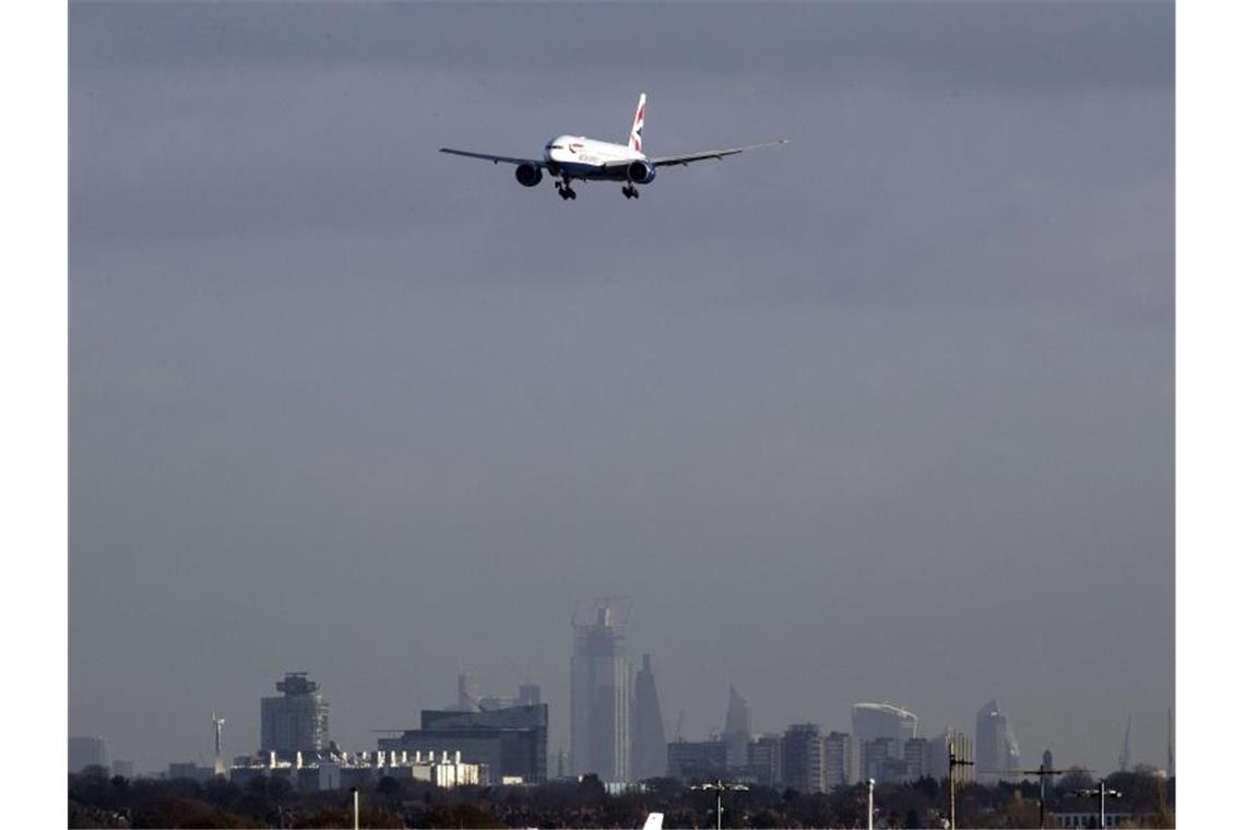Ein Flugzeug landet auf der Nordbahn des Flughafen Heathrow. Foto: Steve Parsons/PA Wire/dpa