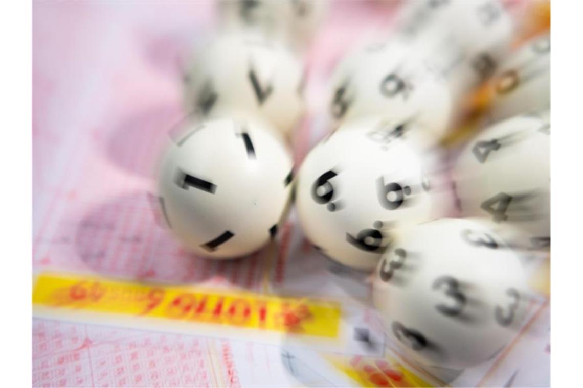 Lotto-Kugeln liegen auf einem Lottoschein. Foto: Tom Weller/dpa/Symbolbild