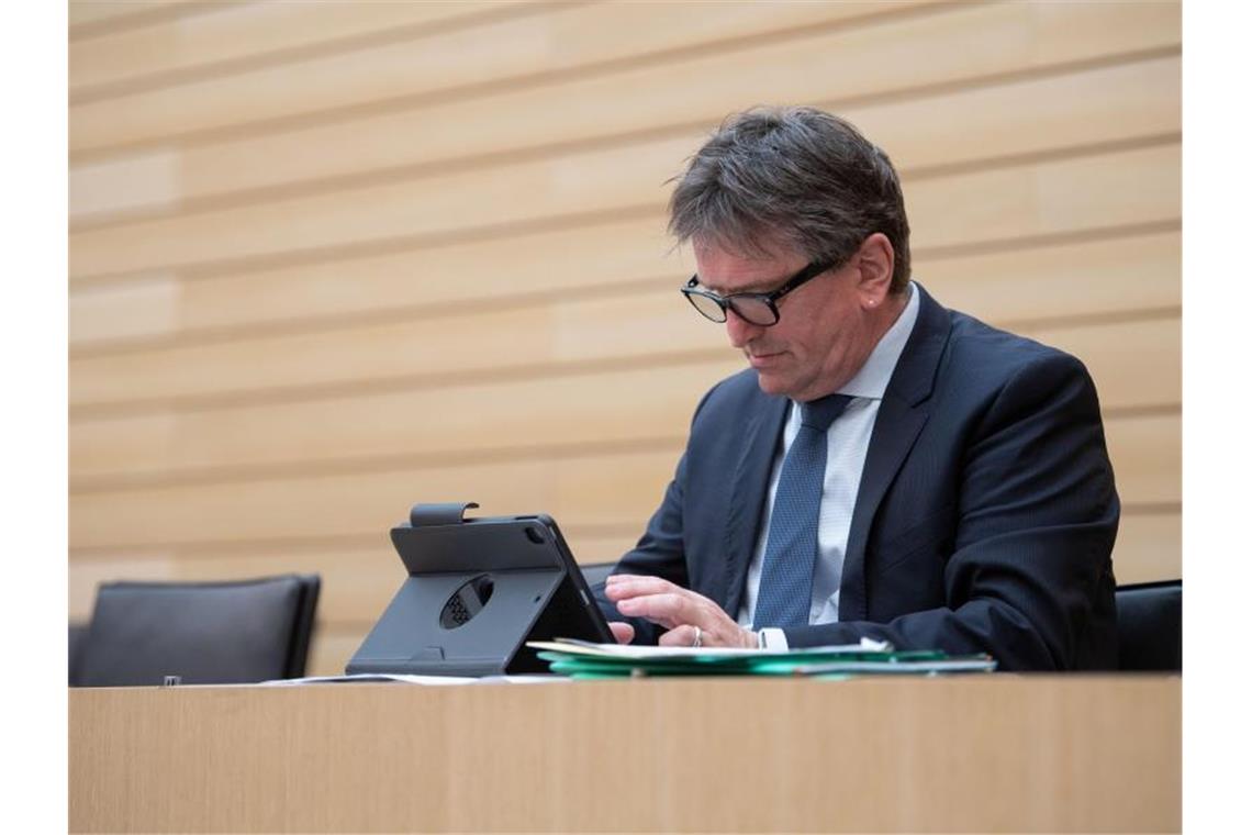 Manfred "Manne" Lucha, Sozialminister von Baden-Württemberg, nimmt an einer Plenarsitzung des Landtags von Baden-Württemberg teil. Foto: Marijan Murat/dpa/Archivbild