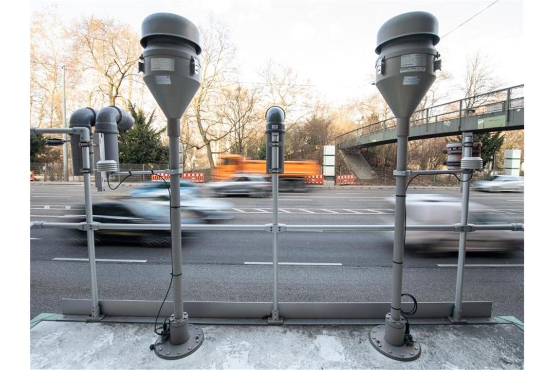 Geräte zur Messung von Feinstaub und Stickoxiden stehen auf der Messstelle „Stuttgart am Neckartor“. Foto: Sebastian Gollnow/dpa/Archivbild