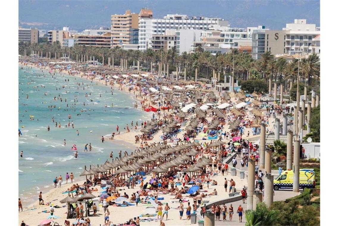 Touristen sonnen sich am „Ballermann“-Strand von El Arenal auf Mallorca, wo ein 18-jähriger Deutscher eine erst 14 Jahre alte Touristin aus Deutschland vergewaltigt haben soll. Foto: Clara Margais/dpa