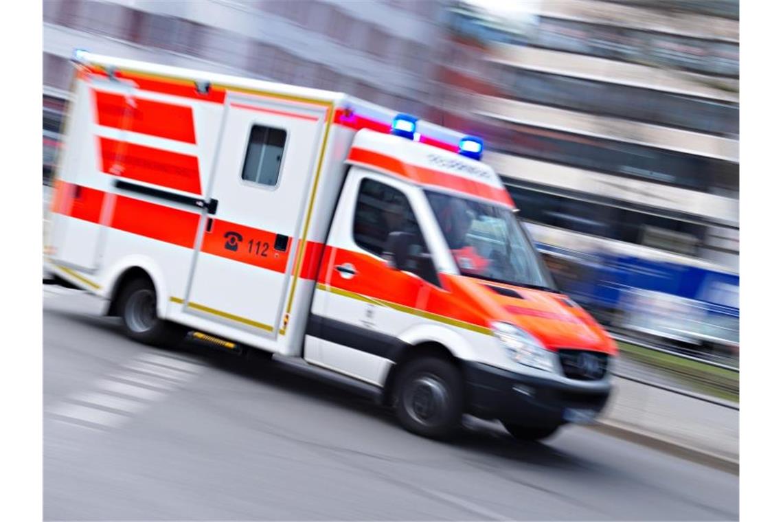 Ein Rettungswagen ist mit Blaulicht im Einsatz. Foto: Nicolas Armer/dpa/Symbolbild